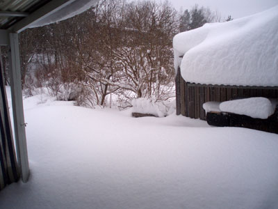 At last! The water pipes are thawed and we have water again. We have only had water in the kitchen, and only cold water, cold as ice, since Christmas Eve. Not much fun to wash your feet in. Electrician Bengt came over with a strange gizmo, winded cables around the faucets and in some way heated the pipes so the water could run again. It was thoroughly frozen – although we were gone from home only a few hours in X-mas Eve. Now we will not shut the faucets until midsummer.