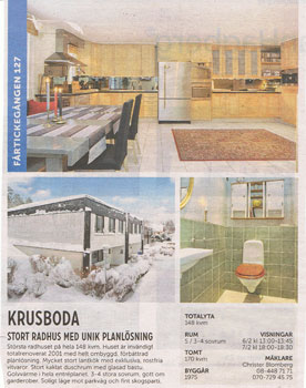 Now that people are coming to see the house of course we start thinking of all those things that should have been fixed a long time ago. For example we have to mend all the ugly holes in the kitchen walls. And then we have to paint over a little – but how to get the right color? By stealing a small piece of paint down by the floor behind a cupboard and bring it to the paint shop for color mixing.