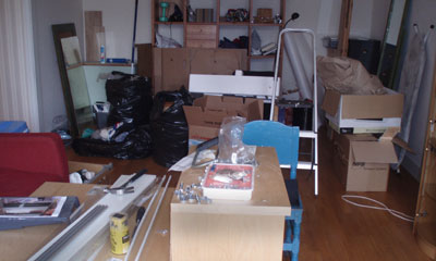 The moving out keeps on. It gets more and more desert-ish at home. Except for the banisters, the easy-chairs, the lamp, the paintings, the open fire place (fake), the boat, it looks about the same in the living room as it did in January 2007. All book shelves and books have moved out. And some wonder what you have such stuff for… Well, if the reading of the books themselves doesn’t give an added value (which we think it does) they still have some impact on the cosiness of the house.
