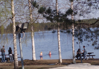 Now the commuting begins. Y-bus was the first means of transportation, for the one who has to work in Stockholm. Actually quite comfortable, except for the travelling time: 6 hours 20 min. Short stop in Tönnebro, where it was so warm that the kids (and adults, too, if they had dared) could take a swim. Very ok for the 25th of April.