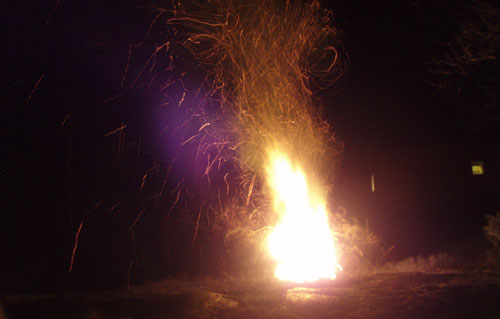 At last we dealt with the second pile of remainders from the summer’s cutting down trees. A slow start with a little cutting here and there to gather the heap better in the snow flurry. Then fire with the help of diesel and tire. Then smoke!!! The whole neighborhood was enfolded in thick smoke, neighbor Madeline thought our whole house was on fire and almost called 112. It wasn’t, but was all impregnated with smoke and smells like a chimney now. Ylva had to stay another day to ventilate house and clothes. Cold! But the pile is gone.
