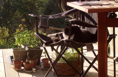 Under semestern flyttade vi in i ”affären”. Ett akut projekt var altanen. Urban hjälpte till i början, Fredrik hjälpte till i slutet, däremellan gjorde Sigge det mesta. Nu har Fido en bra plats att tillbringa soliga kvällar på, även om det fortfarande saknas räcke.