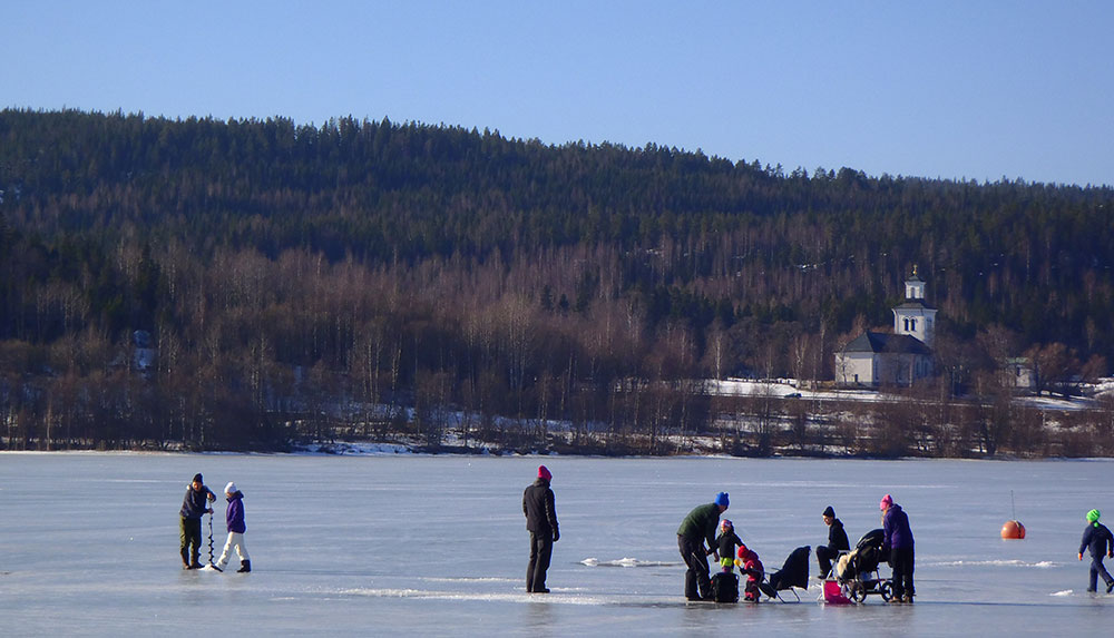The Health Walk is a really nice idea. To be found here and there in the country. On this particular day the sun shone over the promenade, so that it felt like real spring. The fishing went out on the ice, though, and it’s probably not entirely certain that the snowmobile riders are pleased that the season was over so fast.
