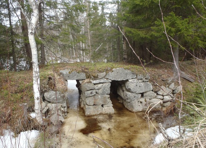 Bro från… ja, när då?/Bridge from… well, when?Hem för en backstugusittare?/Home for a crofter?Gammal liten bekant (telefonfoto)./Old little acquaintance (telephone picture).Landsbygd, fast nästan i stan./Rural, though almost in town.Civilisationen. Som ett vykort från 50-talet./The civilisation. Like a postcard from the 50s.