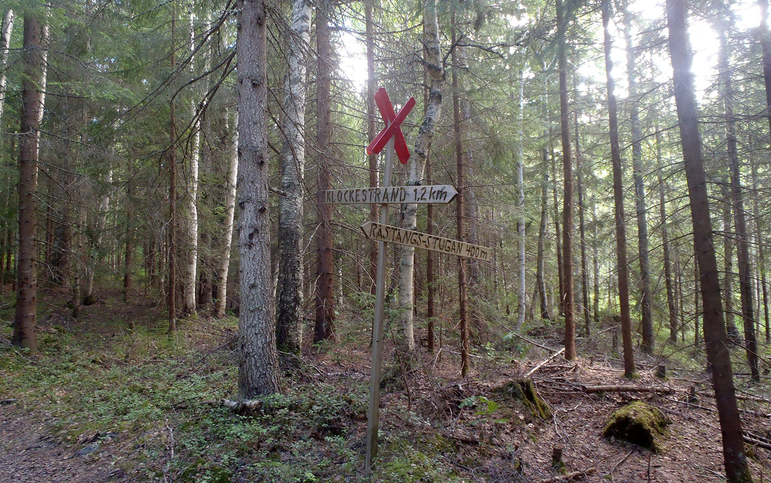 Vandringstips VI: Råstångsberget höjer sig över Klockestrand och blev det andra berget vi besteg denna dag. Brantare och längre promenad än upp på Hornöberget. Och – tycker vi – bättre utsikt även om man inte ser mycket hav. Fin liten stuga.