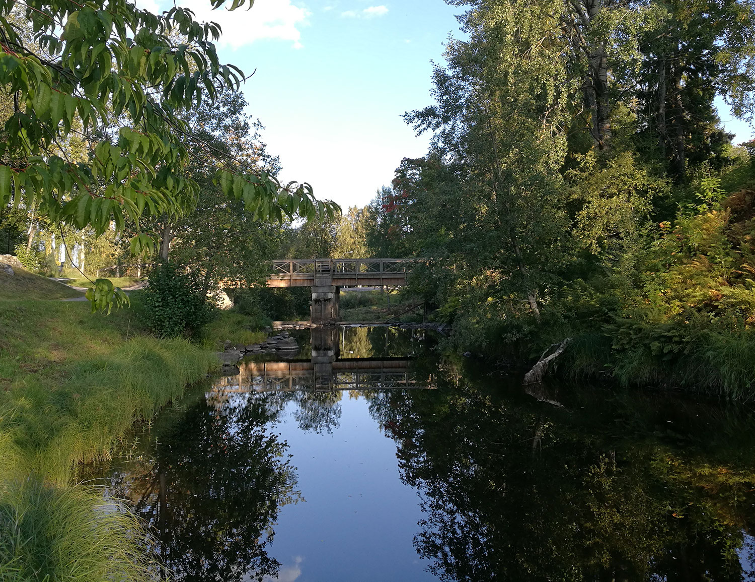 Ån flyter stilla genom staden. The small river flows still through the town.
