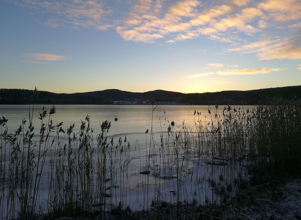 Slutet av november. Det har inte kommit någon snö än men däremot har det varit dimmigt och fuktigt länge. När kylan slår till täcks hela världen med frost. Och de vanliga promenadstråken ser helt annorlunda ut.