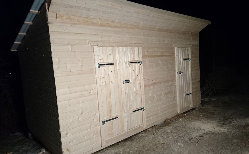 Förrådsbygge 3/Storage building 3 Se där! Nu är även framvägg och dörrar på plats! Look at that! Now also the front wall and doors are in place ! Dela det här: Klicka för att dela på X (Öppnas i ett nytt fönster) X Klicka för att dela på Facebook (Öppnas i ett nytt fönster) Facebook Gilla Laddar in … Publicerad av Sigge och Ylva Två västernorrlänningar som tidvis levt i förskingringen (och delvis & tidvis fortfarande gör det). Visa alla inlägg av Sigge och Ylva