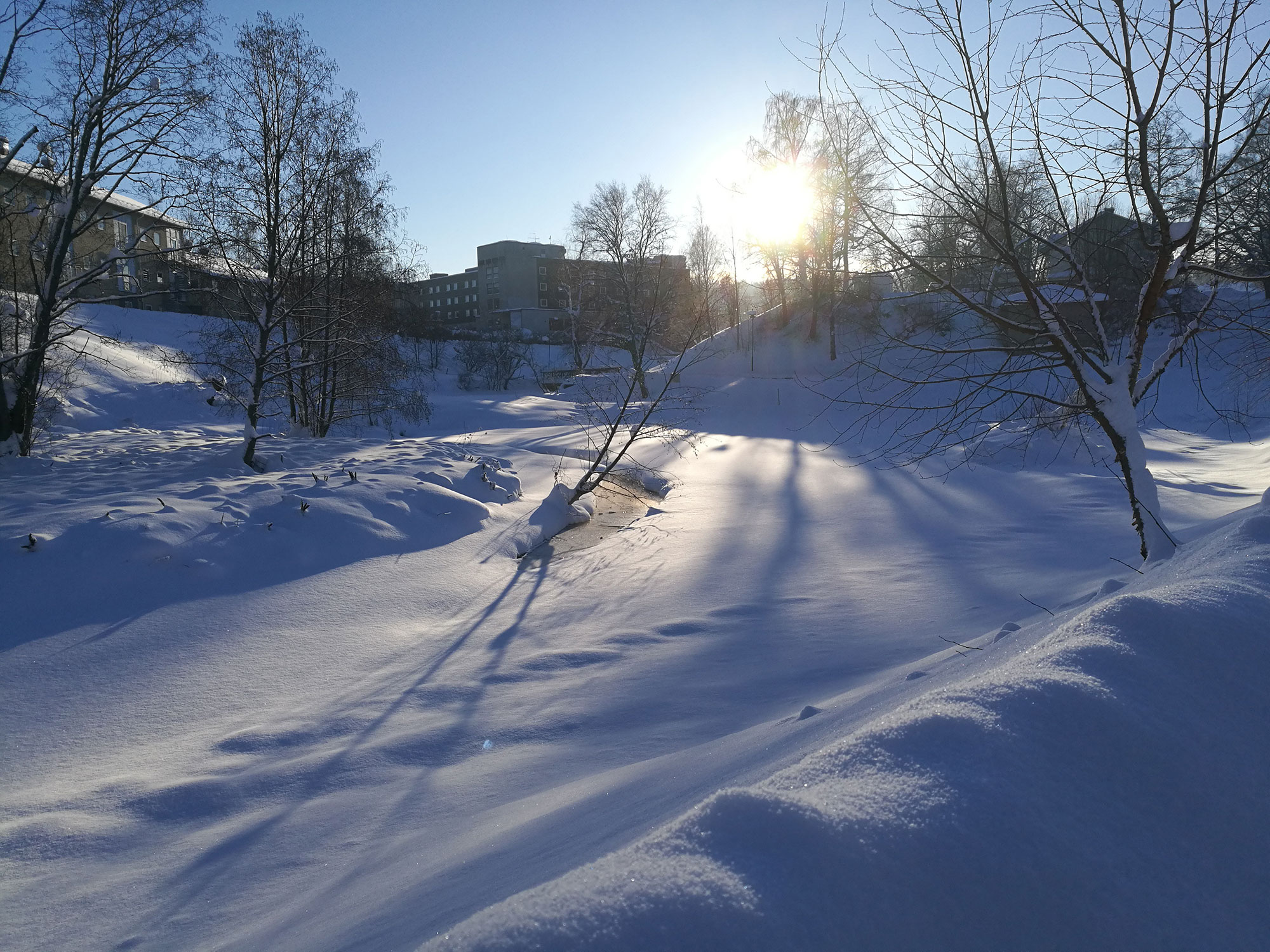 We looked out through a window and then there were not very many options. We have to go out for a while and took a turn along the Kramforsån (Kramfors creek). A really nice day!