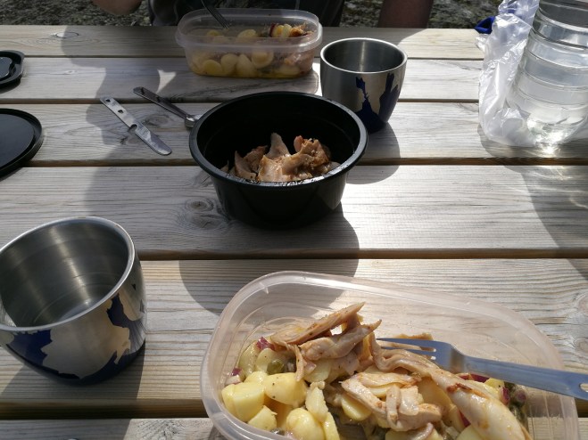 Även i år är myrstackarna rätt stora. This year too, the anthills are quite big.Uppe. Stugan är sig lik. Up. the lodge looks the same.Ovanligt trevlig matsäck denna gång. Unusually nice lunch pack this time.Utsikten är sig också lik. The view looks the same, too.Kramfors från ovan. Kramfors from above.