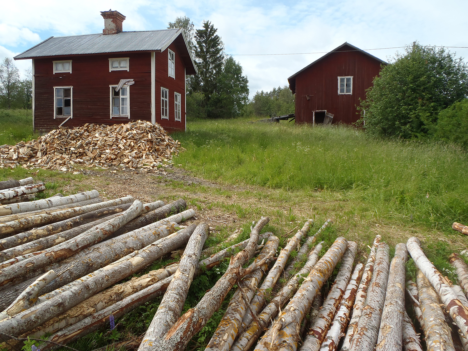 Detta var mest skog tidigare. This was mostly forest earlier.En del av det avverkade. Some of the felled.Egen ved. Own wood.Se där, en sjö! Den har vi inte kunnat se tidigare, före avverkningen. Look , a lake! We have not been able to see that before, before the felling.Troligen inget samband, men bilderna är tagna på samma rundtur. Probably no connection, but the pictures are taken at the same walkabout.