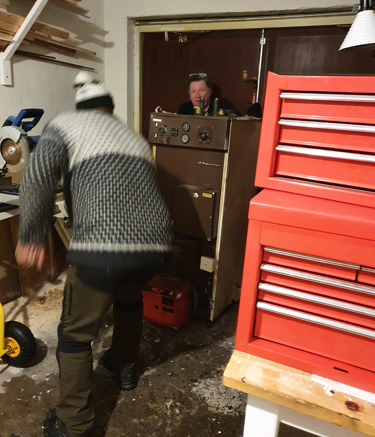 The entire terrace was covered in ice after the snowfall. But the last few days it has been extremely hot so the ice started to melt. And then it was possible to remove it – good for several reasons.