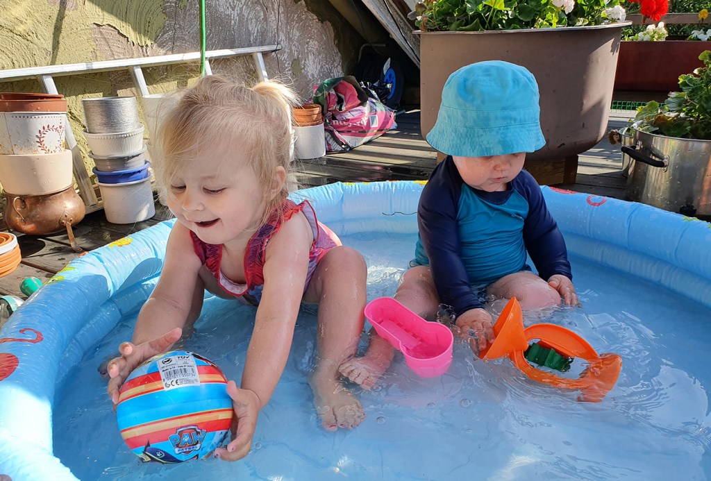 When it is summer and hot, you SHOULD swim, preferably several times a day. So back from the swimming lake, a small pool was arranged on the terrace. Perfect employment for Ebba and Ludvig. A little later, the daycare child Tycho came to visit and that was of course very exciting.