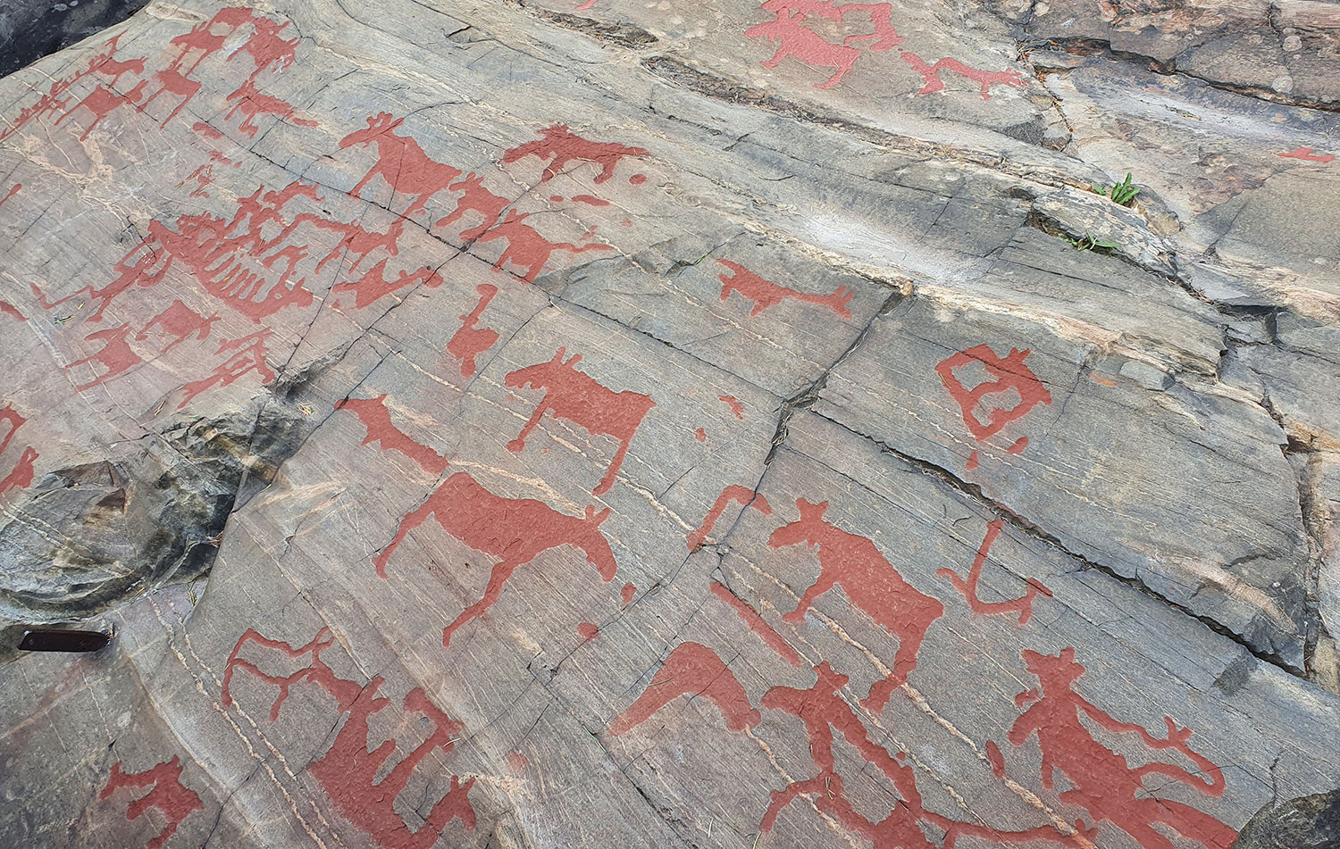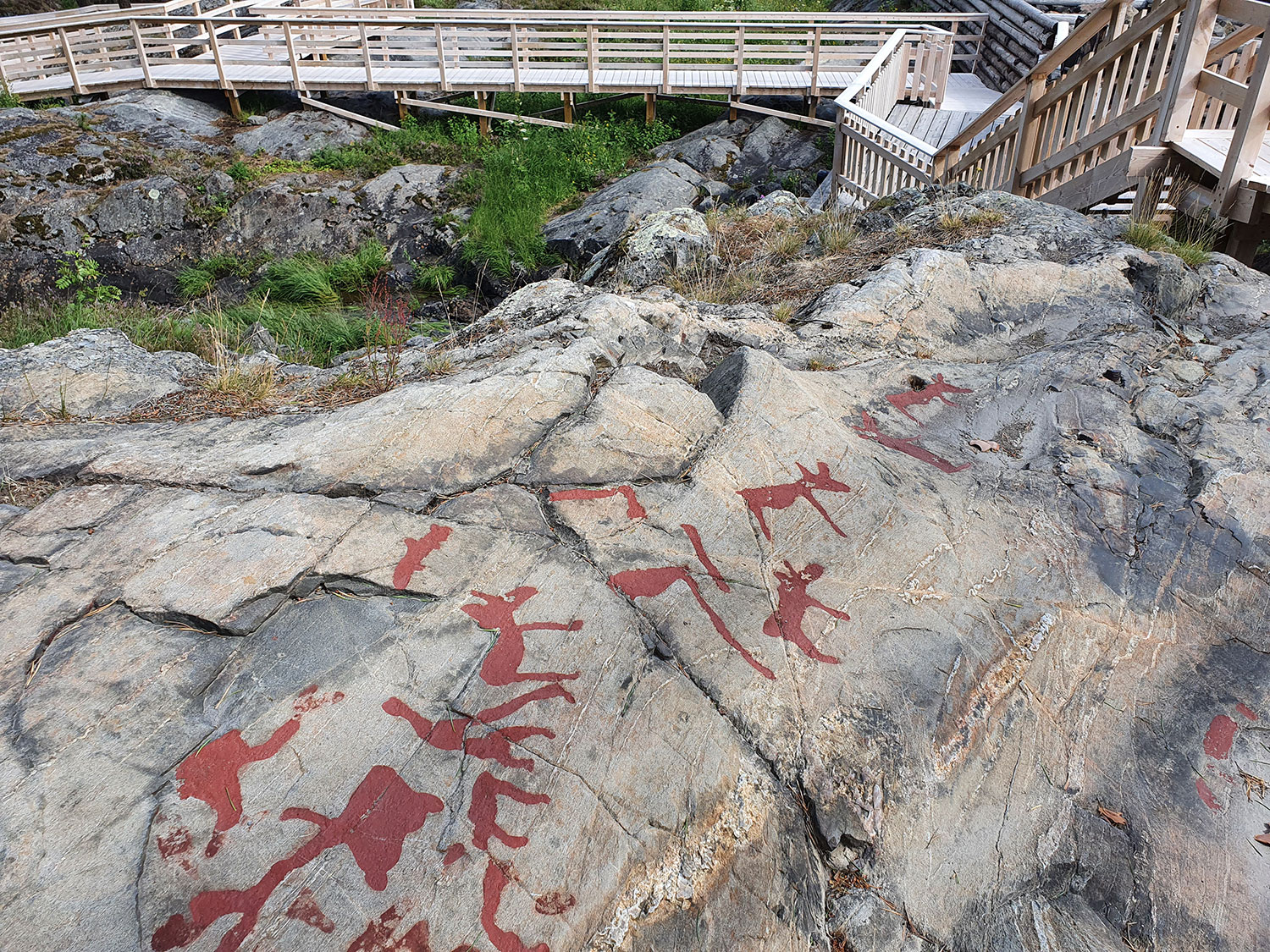 We have long wanted to visit Nämforsen’s rock carving field and now it was finally time. There are rock carvings from as long as 6000 years ago. They were closer to the power plant than we had thought and it was easy to access them, as there are stairs and bridges to walk on.