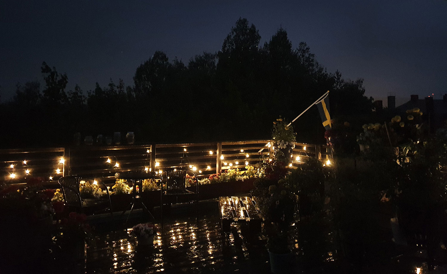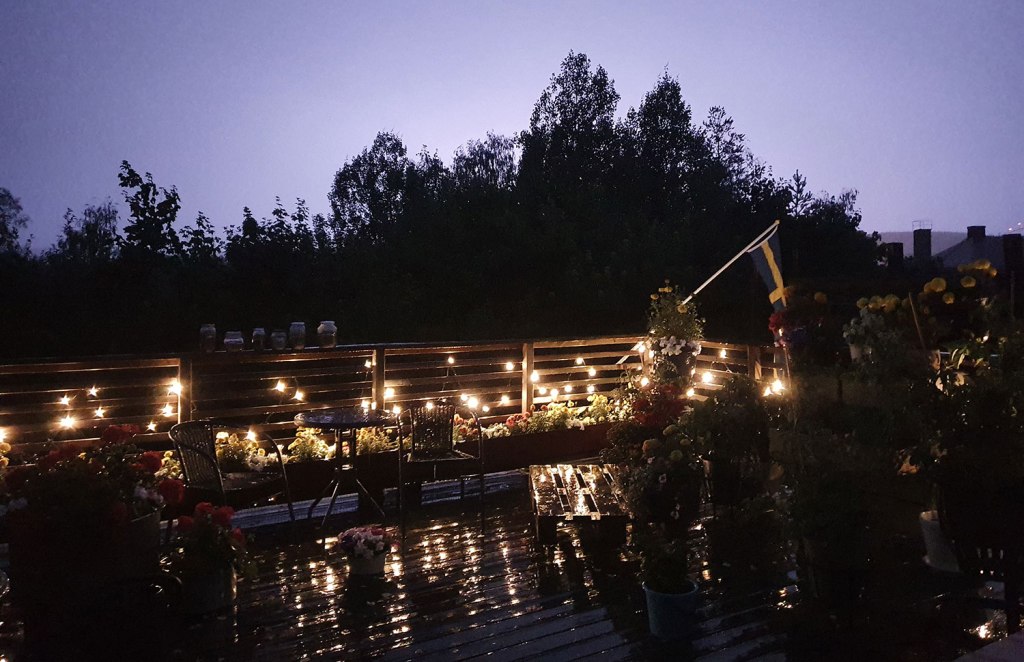 Sent denna kväll i slutet av juli vaknade åskguden Tor till liv och skapade ett riktigt skådespel. Vi har platser på första parkett på vår altan.