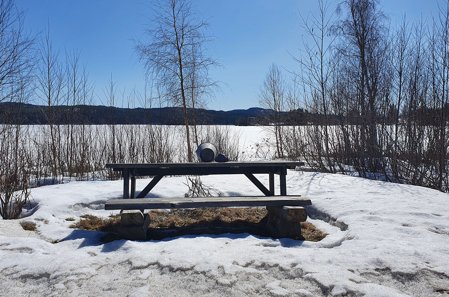 Now that we are both quite bad at walking, we have to take the car to the excursion destinations instead of brisk walks. We know of some places that are easy to get to by car, so we brought coffee and sandwiches to be able to sit by some nice pond and cuddle. But the wind was blowing so hard that it really was not nice in either of the two places we visited. We ended up drinking coffee and eating a sandwich in the kitchen at home.