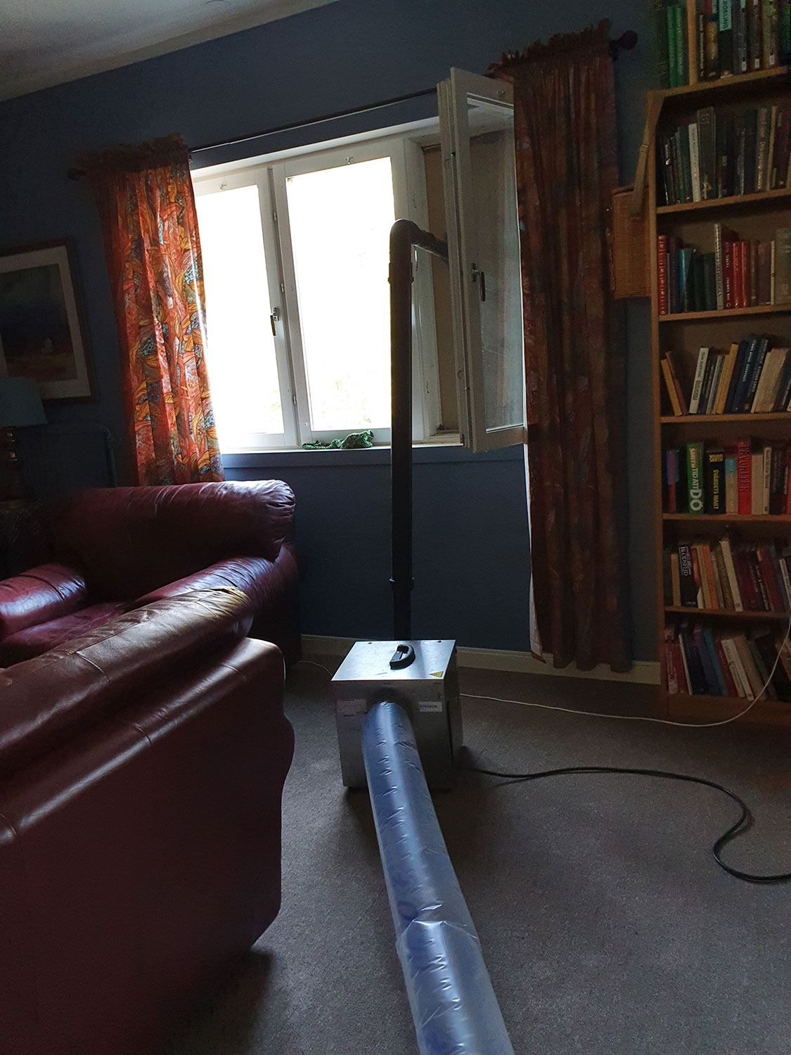 Medan en av oss gullade med barnbarnet, ägnade sig den andre åt att ta hand om den stora katastrofen som inträffat i huset. En vattenledning fick plötsligt nog och började spruta ut vatten över hela vardagsrummet och även spa-delen. Bilden ovan visar hur det såg ut före händelsen. Det stod till och med i tidningen om det.