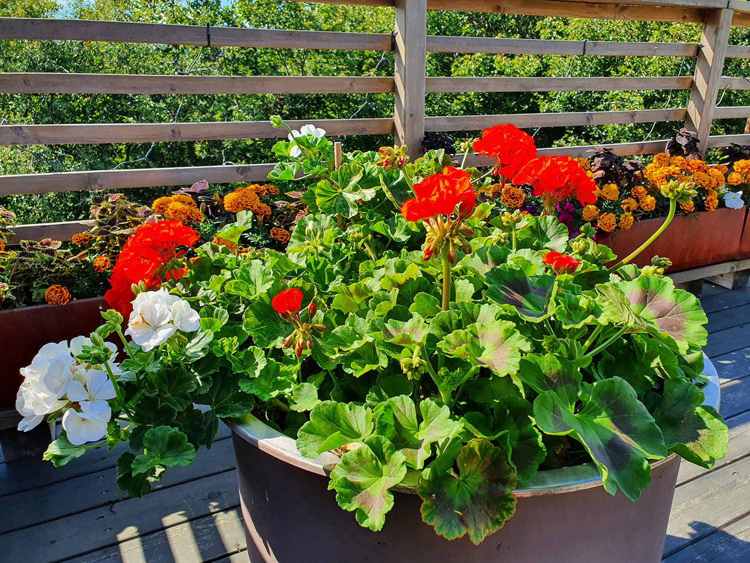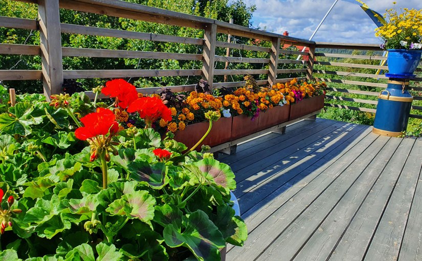 Från början tyckte vi att våra annorlunda altanblommor så lite trötta ut, men nu börjar de verkligen se fina ut. Det verkar som om inneblommorna trivs med att vara ute.