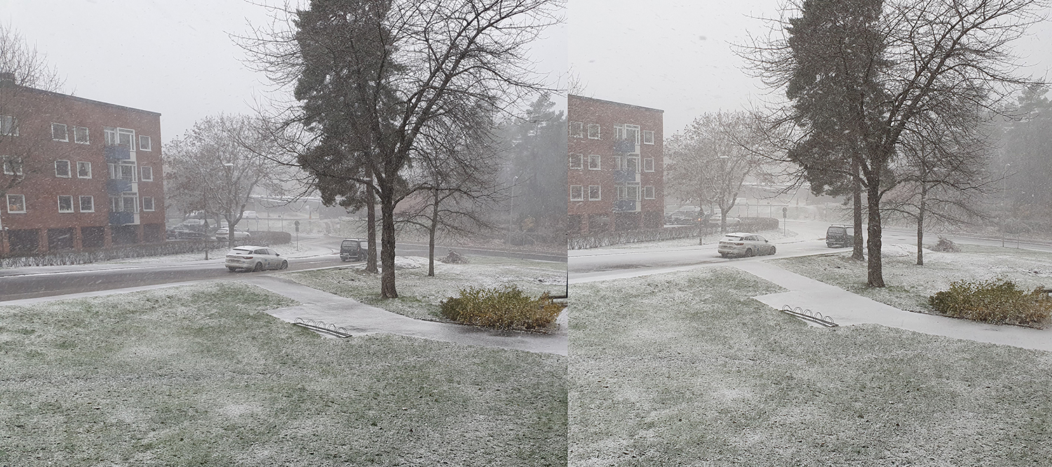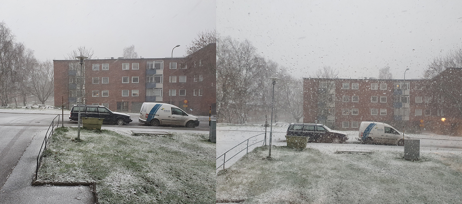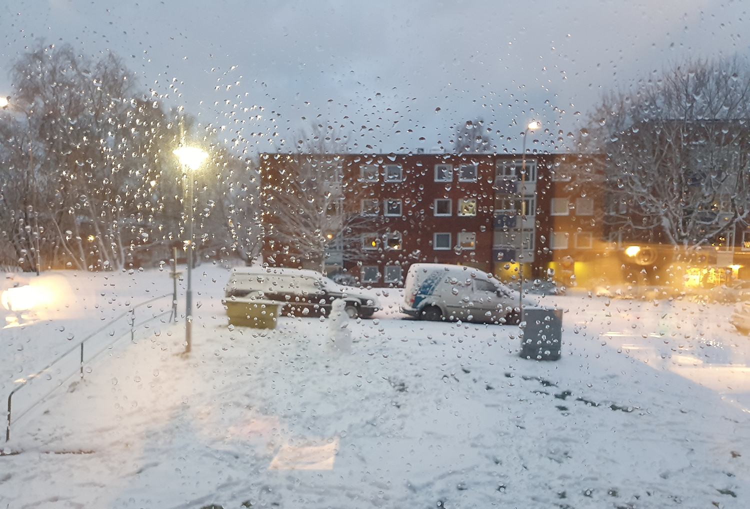 Upp i ottan för att åka till jobbet efter helgens snöfall. Det kan sammanfattas så: fantastiskt vackert att se på men fruktansvärt jobbigt att ta sig fram i den sliriga snön, som det blir när det är nära noll grader.