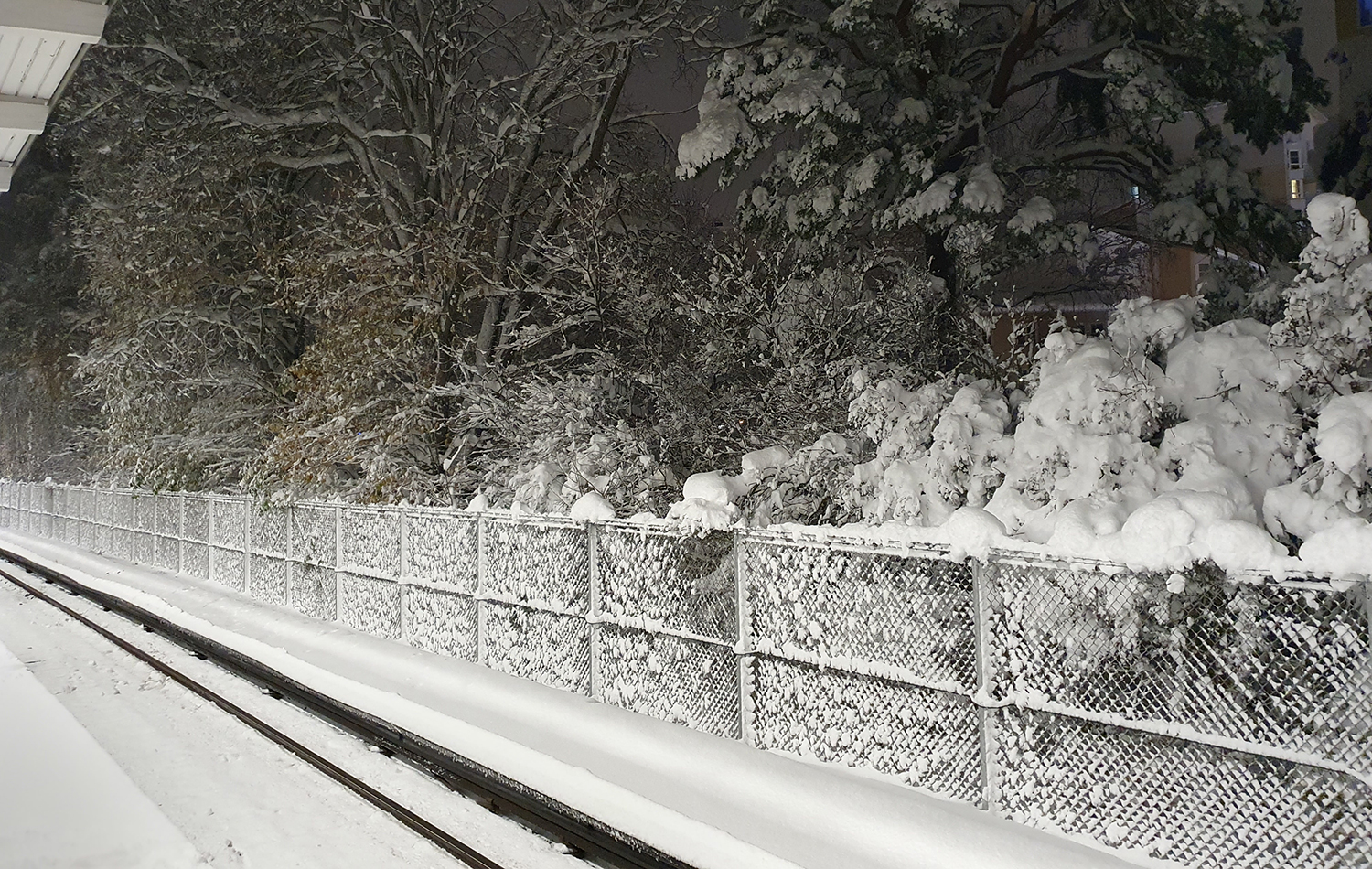 Up in the very early morning to go to work after the weekend’s snowfall. It can be summed up like this: amazingly beautiful to look at but terribly difficult to get through in the slushy snow, which is how it gets when it is close to zero degrees.