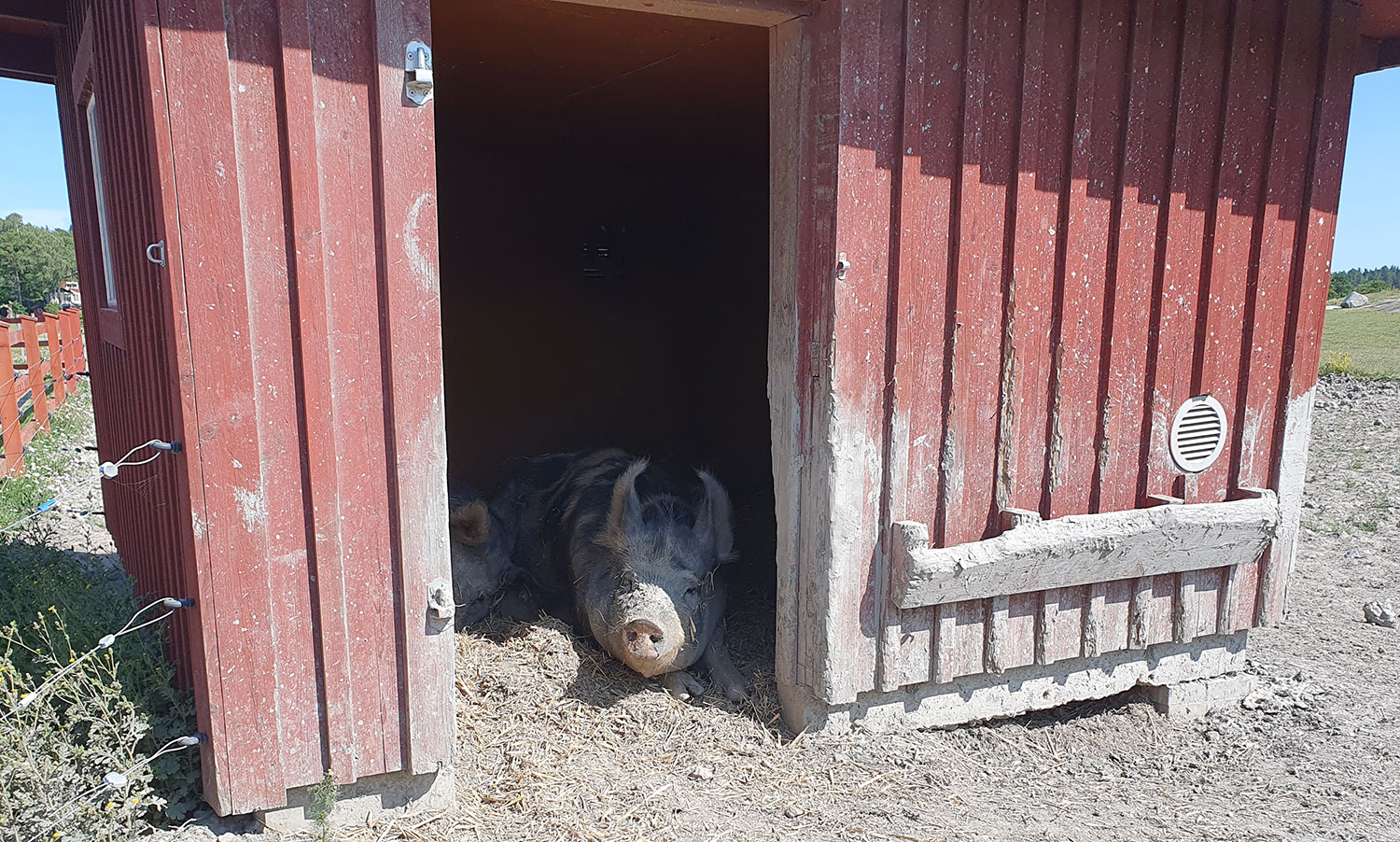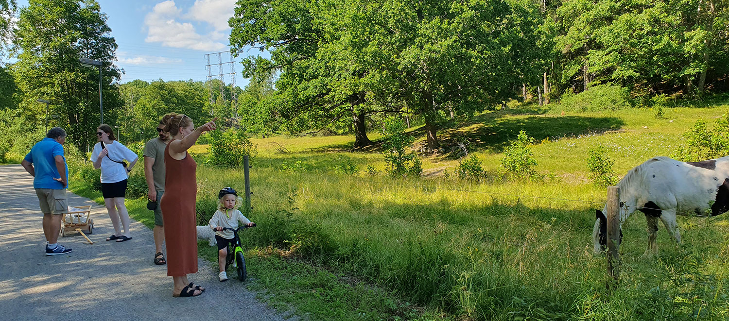 We took a walk down to the nature reserve (old running tracks for some of us). A lot has been done there since we moved, more signs, everything is well organized and it attracts a lot of people. At Alby Resort, efforts are being made to preserve a cultural environment with Swedish landraces. There are Värmland sheep, mountain cows, Gotland rabbits, Kinda hens, Göinge goats, Linderöd pigs and Gotland pony. We only saw goats, pigs and rabbits. The others were too far away on different pastures.