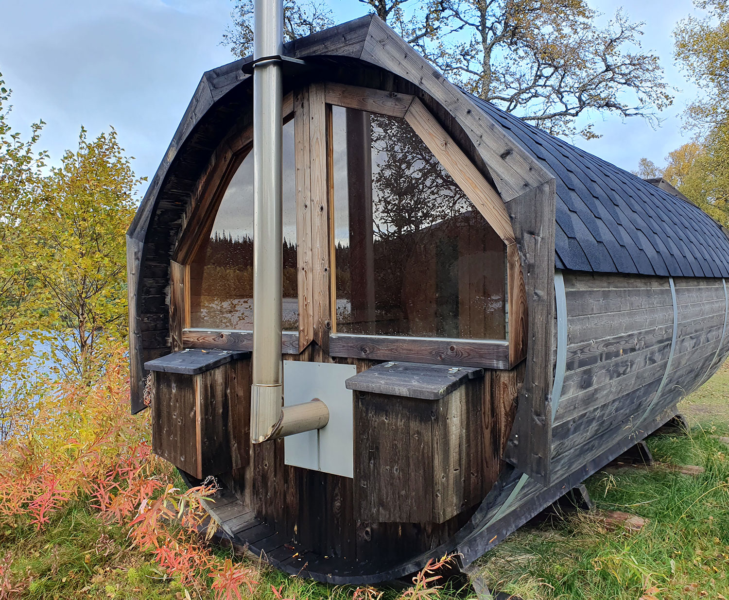 På morgonen gjorde nattåget ett kort stopp i Åre. Dimma över Åreskutan. In the morning, the night train made a short stop in Åre. Fog over Mt. Åreskutan.På Enaforsholm Fjällgård. Utebastu från ingångssidan. At Enaforsholm Fjällgård. Outdoor sauna from the entrance side.Utebastun på baksidan. Outdoor sauna at the back.Samma logi som vanligt: stugan Bläckhornet, som heter så på grund av sin form. The same accommodation as usual: the cabin Bläckhornet (the Inkwell), so named because of its shape.Middag, detta är förrätten. All mat som serveras på Enaforsholm Fjällgård är hemlagad, och gjord på lokala råvaror (ibland sådant som de jagat/fiskat själva). Brödet upptill är gjort på rester efter ölbryggning. Dinner, this is the appetizer. All food served at Enaforsholm Fjällgård is homemade, and made from local ingredients (sometimes things they hunted/fished themselves). The bread at the top is made from leftovers after beer brewing.