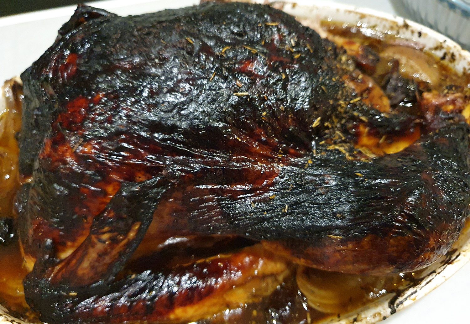 Denna söta lilla ponny har funnits på samma plats så länge som vi promenerat i omgivningen. Den brukar ha en kamrat också, men den var inte på plats just denna dag. This cute little pony has been in the same spot as long as we’ve been walking around in this area. It usually has a mate too, but it wasn’t there on this particular day.Ponnyns utsikt. The pony’s view.Senare på kvällen skulle det som omväxling bli kalkon i stället för julskinka. Det gick väl så där… Det krävdes en del efterarbete för att sanera ugn m m eftersom det rann vätska över formens kant. Later in the evening, as a change, there would be turkey instead of Christmas ham. It went so and so… It required some post-work to clean the oven, etc. because there was liquid over the edge of the casserole.