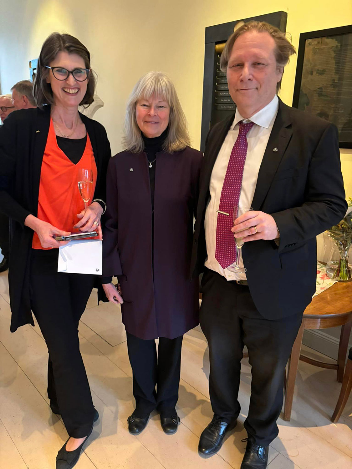 Till sist har även Ylva valt att bli pensionär, ett par år ”för sent”. Avtackning skedde i KSLA:s hus på Drottninggatan i Stockholm i donatorsfoajén, dit det kom rätt många människor till sist. En av presenterna syns ovan, ett underlägg i mässing från Svenskt Tenn, det kom från Anders Walls Stiftelser, med personligt kort från Anders Wall (!). Pensionärslivet kommer fortfarande att innefatta arbete med akademiens trycksaker, och lite med webb. De roliga sakerna med andra ord.