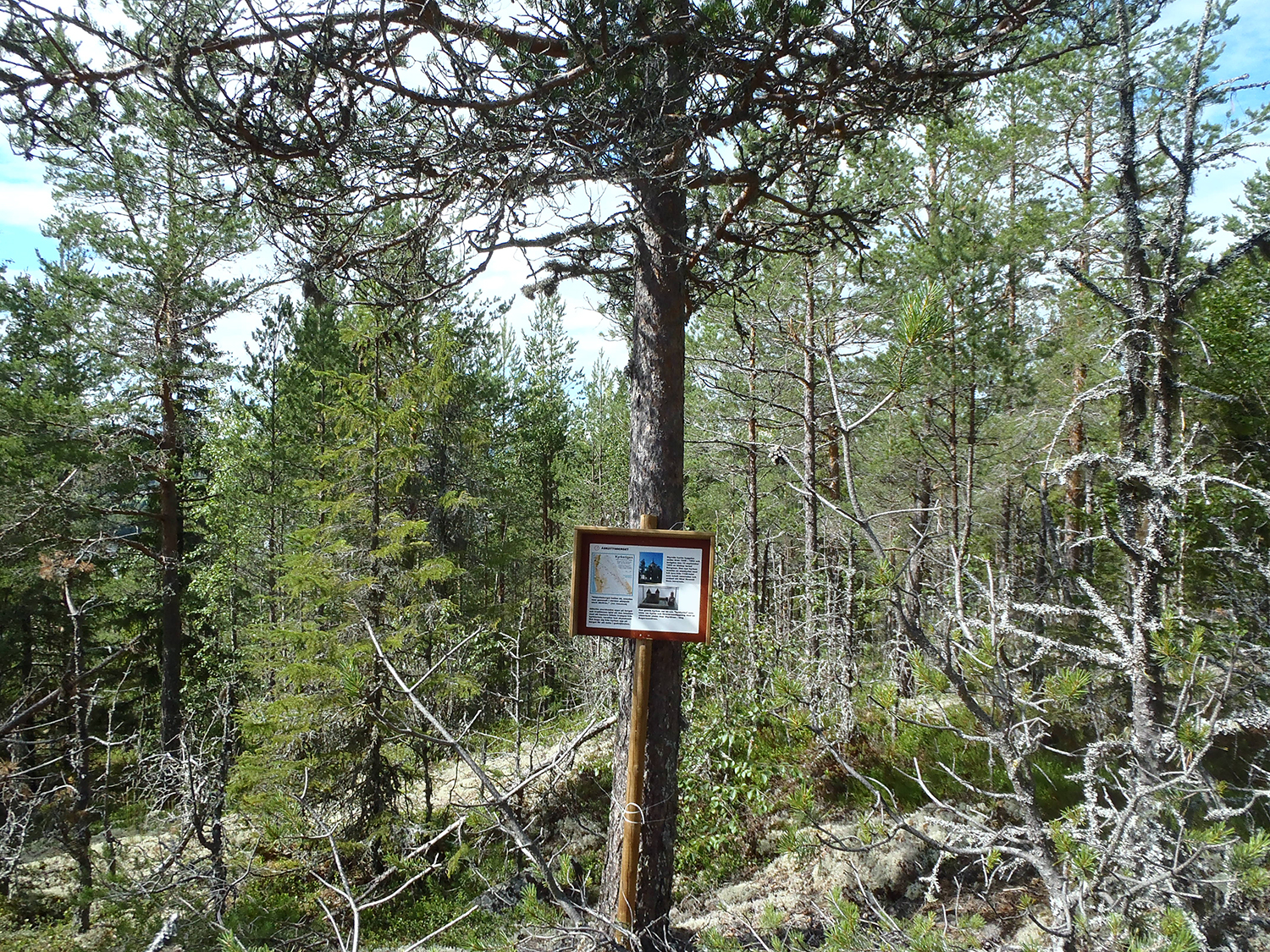 Början på stigen, församlingshemmet i Styrnäs. The start of the trail, the parish home in Styrnäs.Mycket bra information. Very good information.Roligt med all information. Just här om en speciell gran. Synd bara att myggen dödade upplevelsen. All the information was great fun. Here about a special species of fir. Too bad the mosquitoes killed the experience.Gammal orienteringskontroll. Old orienteering control.En väldigt fin stig. Detta var den väg folk tog från Myckelby till kyrkan förr i tiden. A very nice trail. This was the road people from Myckelby took to the church in the old days.Rastplatsen där utsikten inte längre fanns. The resting point where the view was no more.