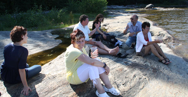 Lägenhetens bakgård brukar vara väldigt ödslig. Syns någon där så är det en enstaka pensionär med hund. Men plötsligt vimlade det av människor i och strax under undre tonåren! Hade de hamnat här av misstag och börjate skapa smått underliga (men, enligt vissa, oundvikliga) konstellationer? Eller var detta helt enkelt ett uttryck för att det plötsligt blev sommar? Vi tror på det sista – klart ungar ska vara ute och springa när det är soligt och varmt ute!
