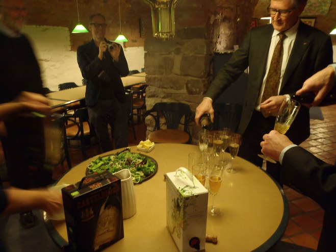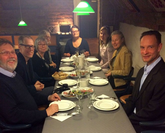 It started in Stockholm, with flowers by mail from Fredrik and Elin. Then Ylva was celebrated at work with a nice present and a fine dinner in Oscar’s Cellar (the Academy’s own ”cosy place”). We went on to Anchor Pub (9 out of 10 points in one of the city newspapers) – a real hard rock place. Despite this, they let us anachronic officials in and no one looked wryly at us.