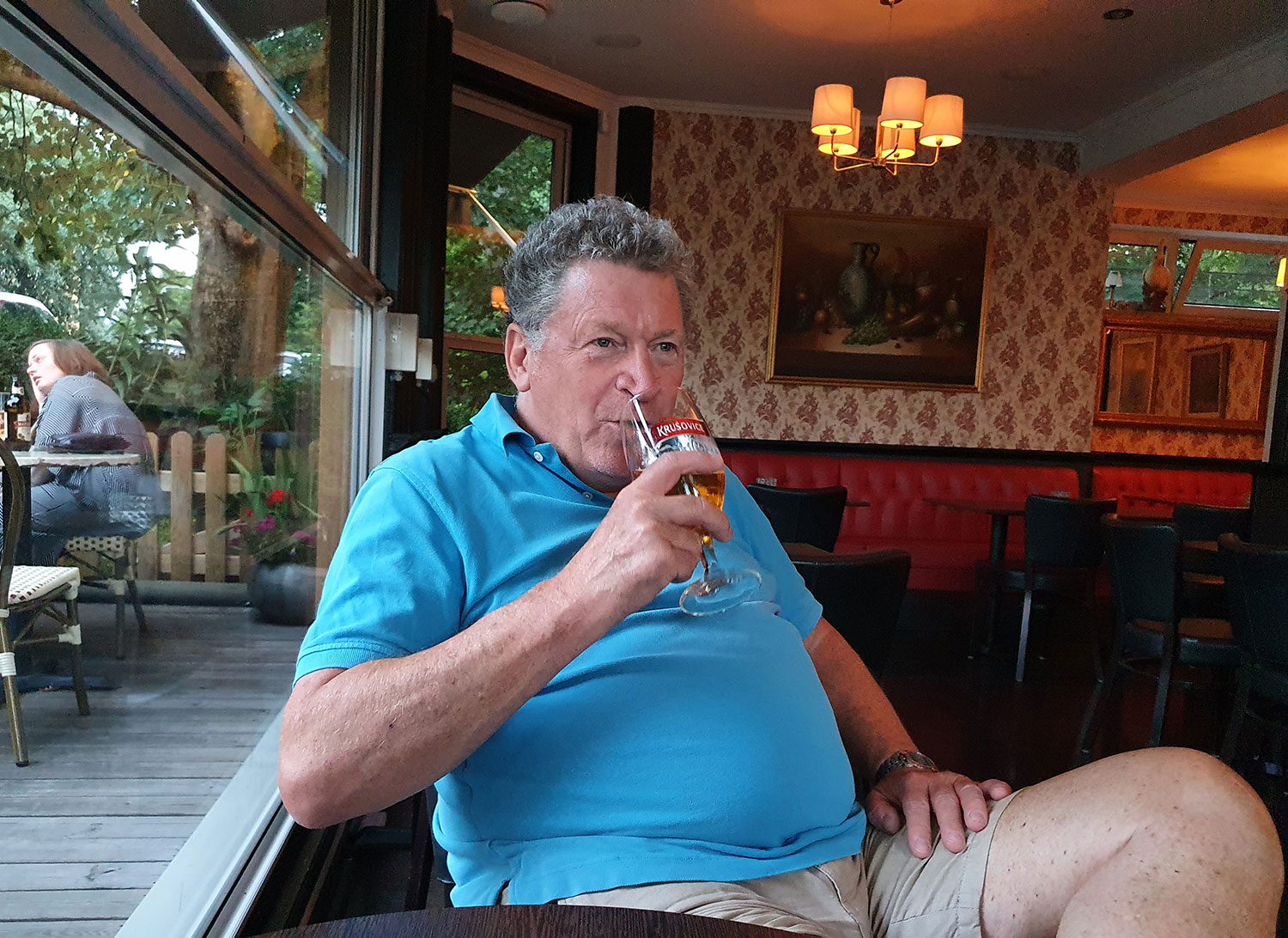 Vi började med varsin öl på uteserveringen. We started with a beer each at the outdoor terrace.Sedan kom maten, som borde ha fotograferats på ett tidigare stadium. Mycket god högrevsburgare. Then came the food, which should have been photographed at an earlier stage. Very good prime rib burger.En av oss är lite frusen trots värmen i luften. Så vi gick in en stund. One of us is a little frozen despite the heat in the air. So we went inside for a while.Även inomhus serveras öl. Beer is also served indoors.En sista klunk innan det var dags att gå hem. One last sip before it was time to go home.