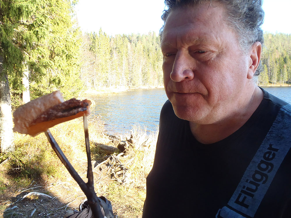 With such warm and nice weather we could not give up the idea of BBQ, even though we didn’t find a place on any mountain. We chose Gäddtjärn at last, lake view instead of mountain view to go with the sausage.