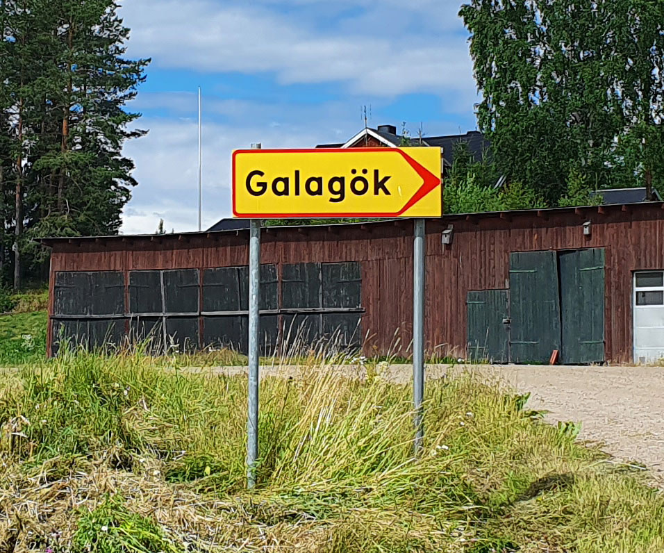 Vägledning till Bruket. Guide to the Mill.Gålsjö Bruk ligger i hjärtat av allt. Pilarna pekar mot Kramfors, Sollefteå och Örnsköldsvik. Gålsjö Mill is in the heart of everything. The arrows point to Kramfors, Sollefteå and Örnsköldsvik.Kapellet. The chapel.Tidigare arbetarbostäder, därefter asylboende. Nu är planerna att göra ”vanliga” bostäder av dem, främst för korttidsboende. Formerly workers’ housing, then asylum accommodation. Now the plans are to make ”ordinary” housing out of them, mainly for short-term housing.Bro med intressant mekanisk konstruktion. Bridge with interesting mechanical construction.