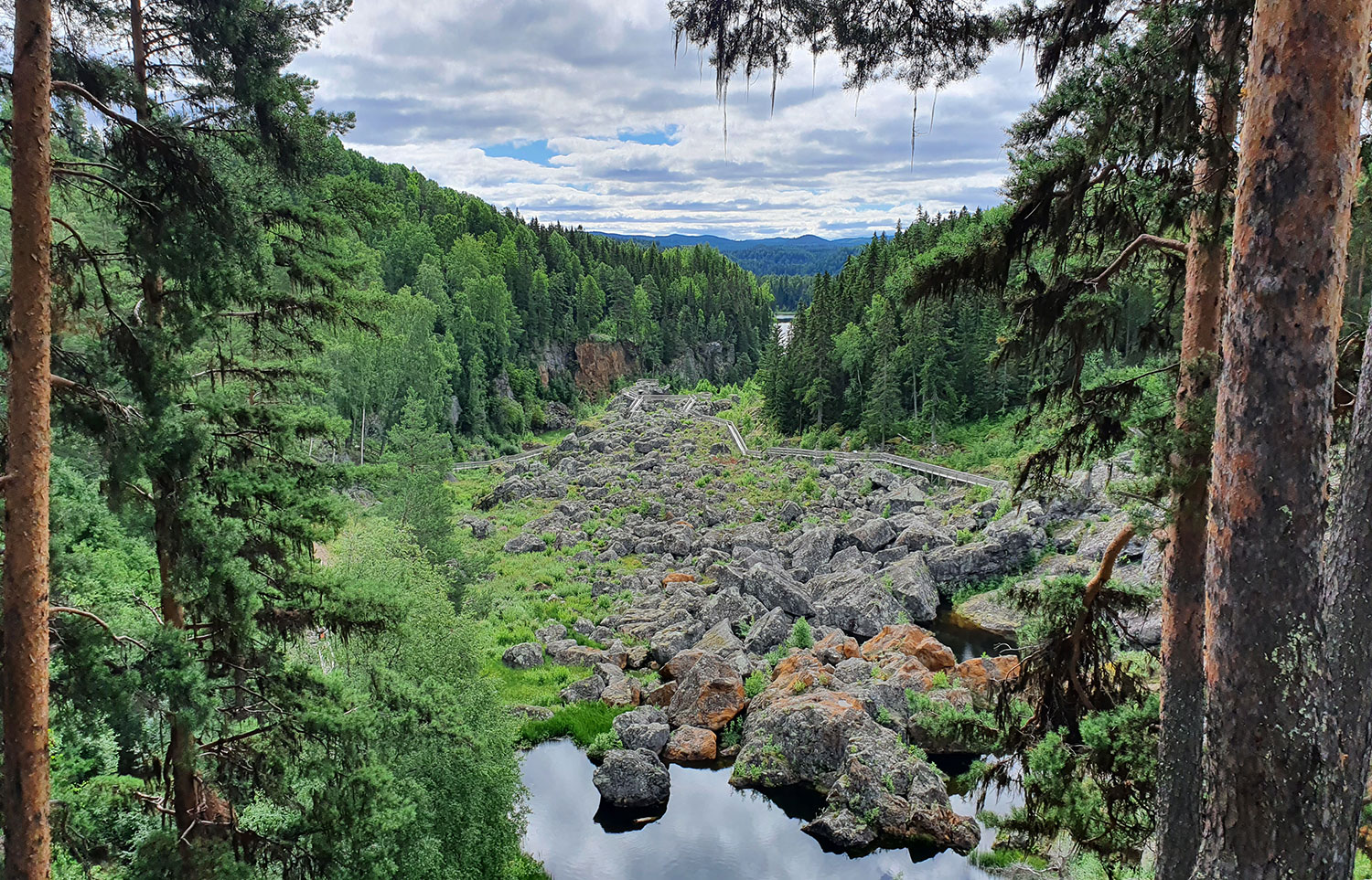 We made a trip up to Ragunda and the first goal was the Dead fall. The result of Magnus Huss’ (Vildhussen, the “Wild Huss”), attempt to redirect the water to create a log-driving channel past Storforsen, with its 35-metre drop, in Indalsälven. It went totally wrong among other things because one hadn’t counted on the powers of the spring flood. The whole Ragunda lake was emptied in June 1796. The river got a new flow which meant that large areas were flooded downstream. We were very impressed with the accessibility to the fall. It is possible to get around the entire area without any problems. Read more about the Dead fall here.