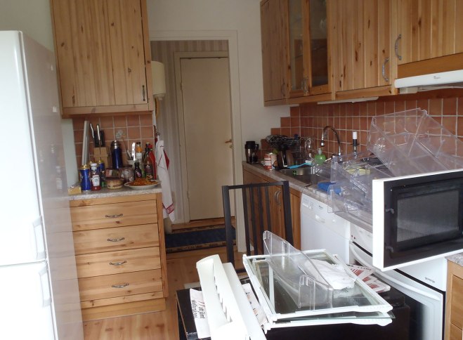 Köket var rätt stökigt under bytesperioden./The kitchen was quite messy during the replacement period.