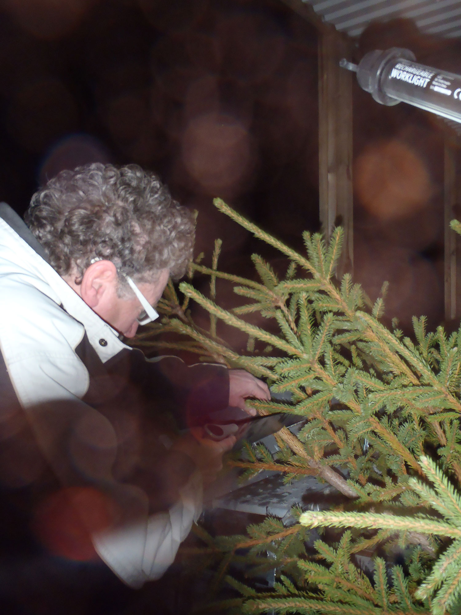 En halv skog, juldekorerad./Half a forest, decorated for Christmas.