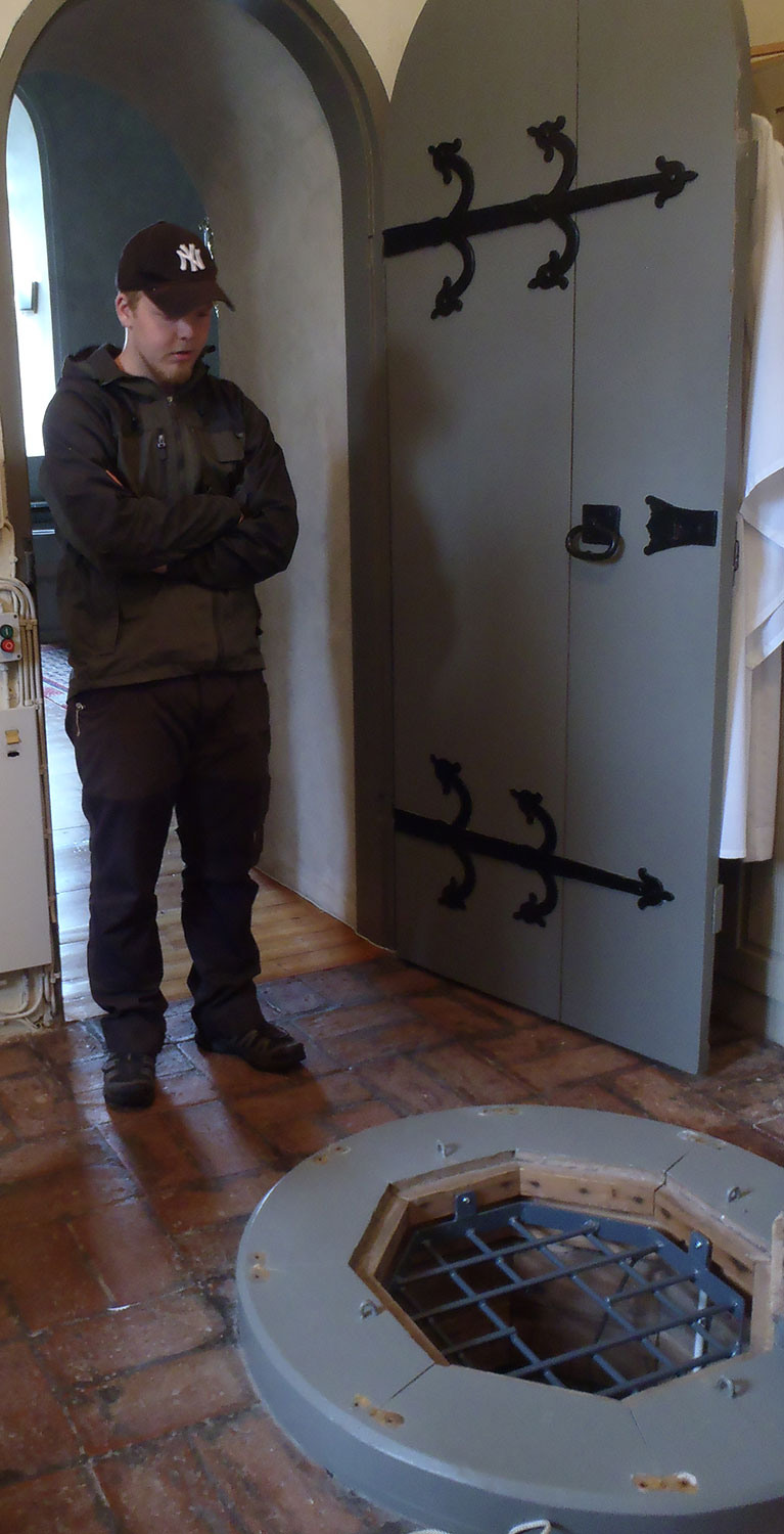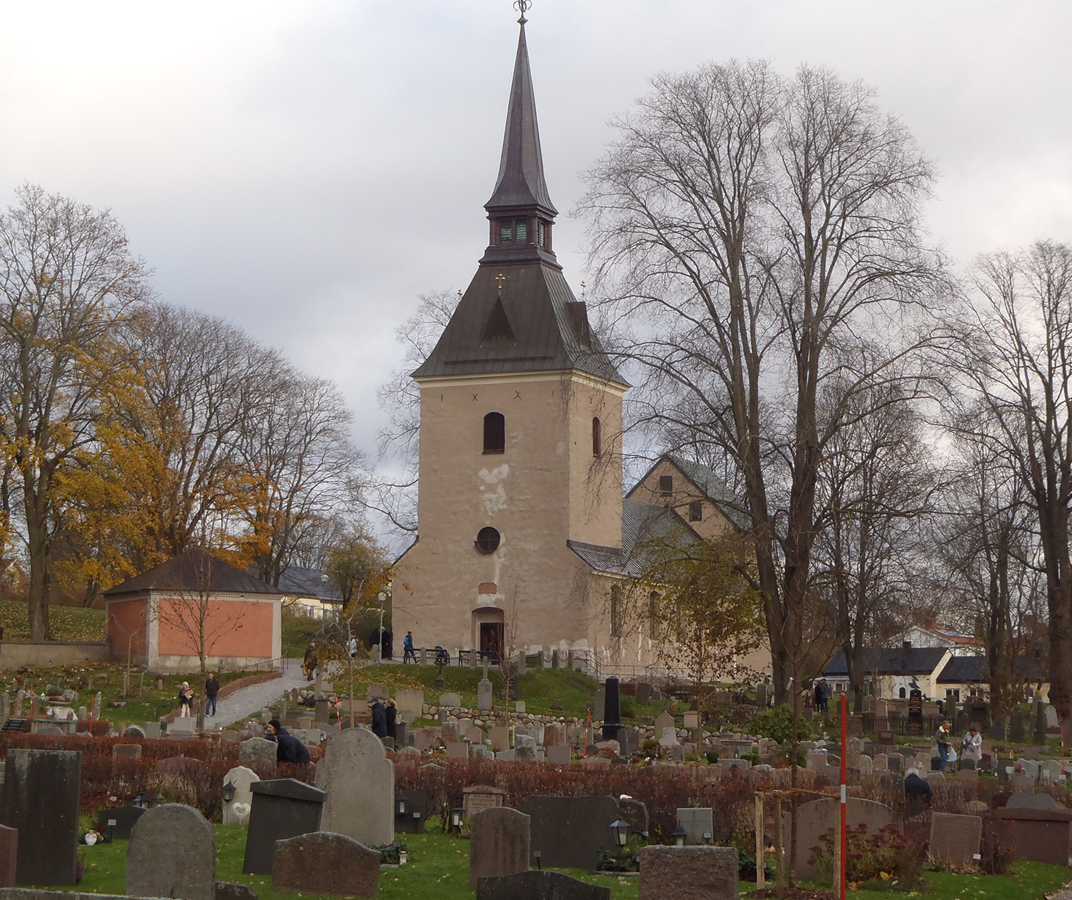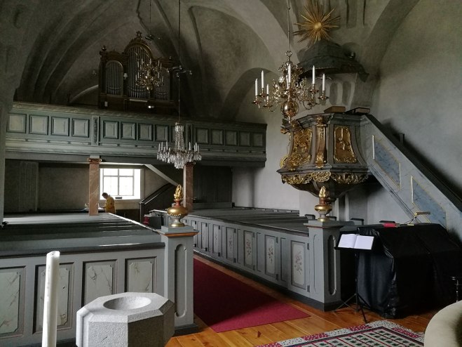 The geocaching trip continued. At Sånga church there should be a geocache. We got there after closing time but luckily the young churchwarden was late with the key so we could go in and have a look at the church. It was built in the 1300th or 1400th century at the site of what once upon a time probably was a pagan sacrificial well. After christening, the well became known for its health-promoting effects. Over the years, the church has undergone major changes, and the well has alternately been condemned and blocked up, alternately open so that people have been able to drink the water and thereby become healthy (at least according to different stories). Thanks to the young churchwarden, we got to see the well itself in the Church’s sacristy. After the visit we found the geocache in the middle of the woods quite far from the church. It, too, a church.