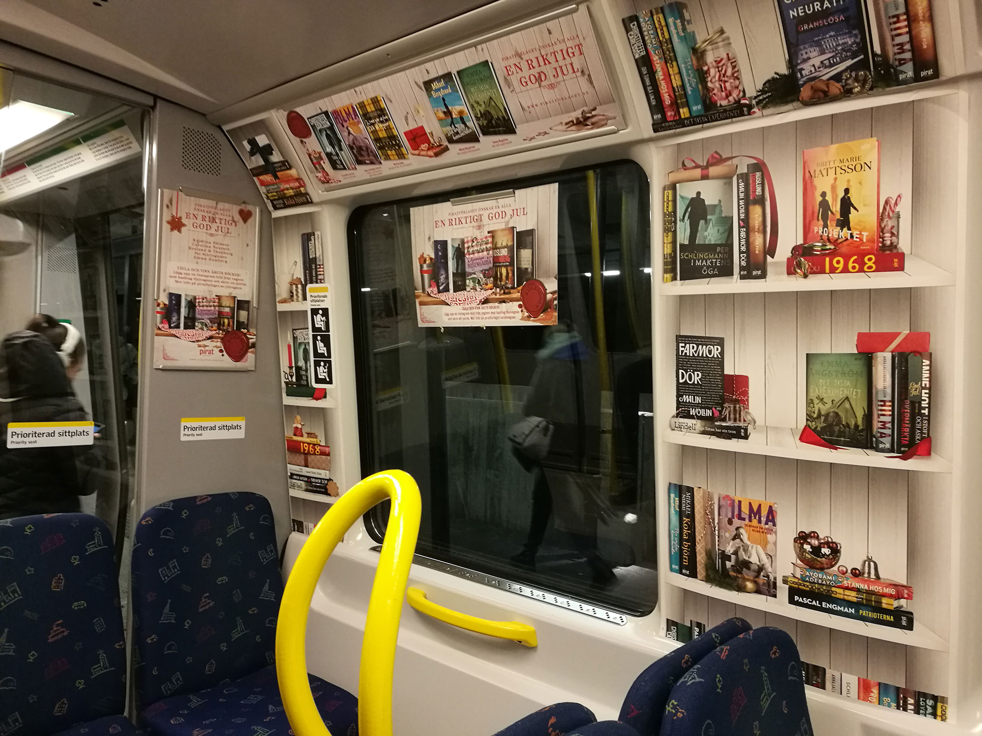 One day, the subway looked different when it was time to go home from work. Decorated with books and bookshelves (pictures clearly, not real). Inside the car there was a call to take a picture – which the traveler obviously did – to publish on Instagram along with a Christmas gift poem – which the traveler obviously did. This led to an unexpected Christmas present/award in the competition. All of a sudden, five of this year’s bestsellers from Piratförlaget appeared in our mailbox!
