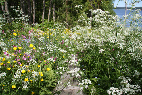 Vi firade en lugn midsommar i solen. Efter att vi har tagit ner ett stort antal träd, är det som brukade vara en stig i skogen nu mer av en äng. Inga problem att fylla en vas med blommor. We celebrated a calm midsummer in the sun. After we have taken down a large number of trees, what used to be a path in the forest now is more of a meadow. No problems to fill a vase with flowers.