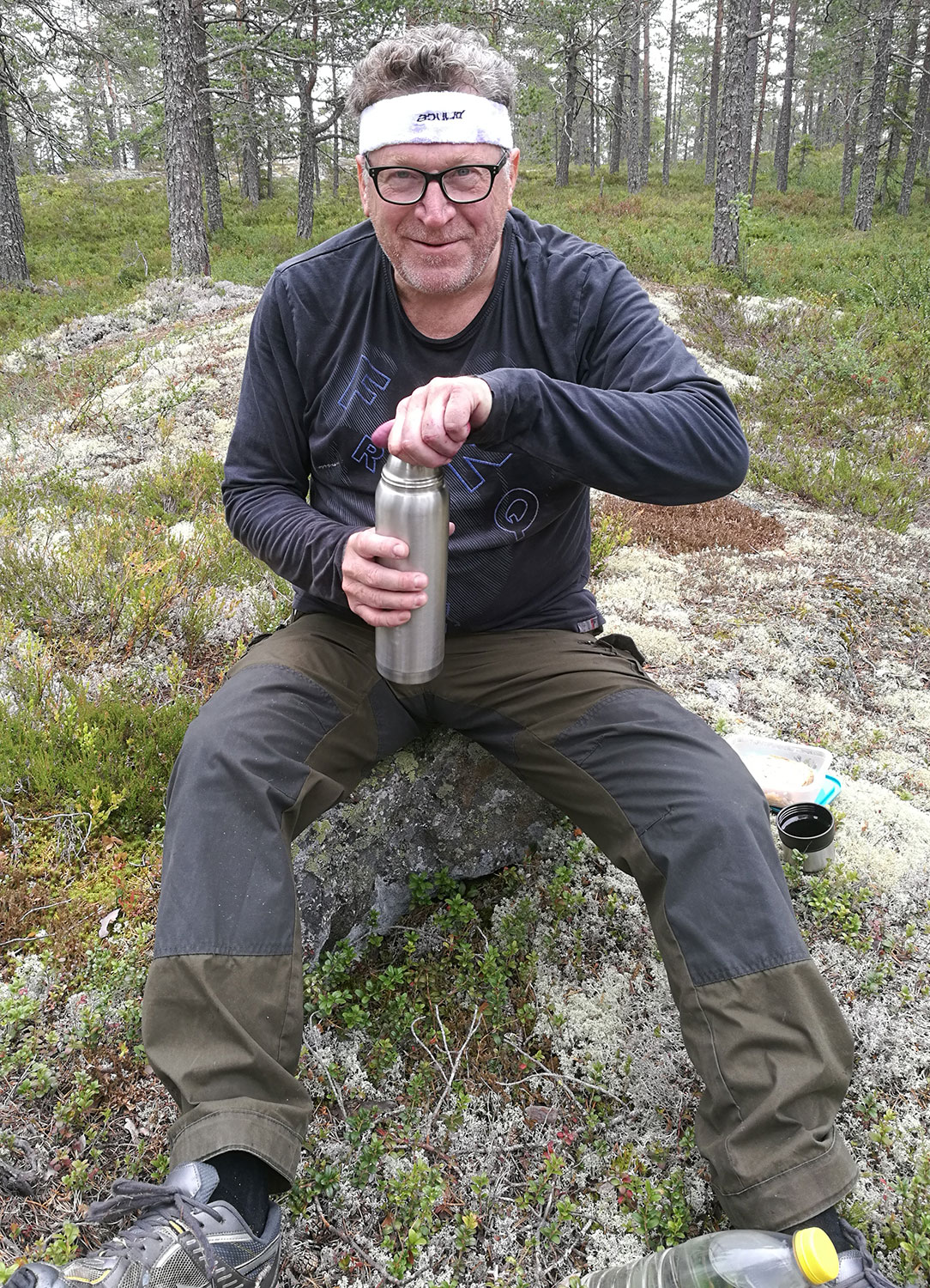 Välförtjänt kaffe ute i blårbärsriset. Well-deserved coffee out among the blueberry sprigs.