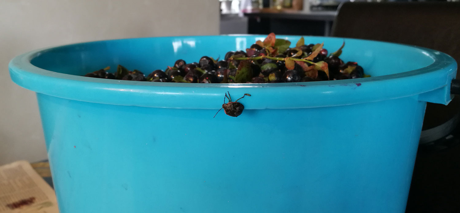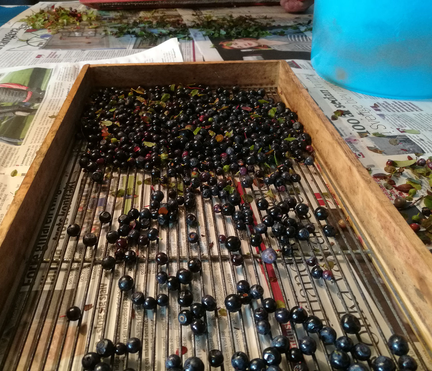Vid första tillfället rensade bären vi inomhus, vädret var lite trist. At the first occasion we picked and cleaned the berries indoors, the weather was a bit dull.