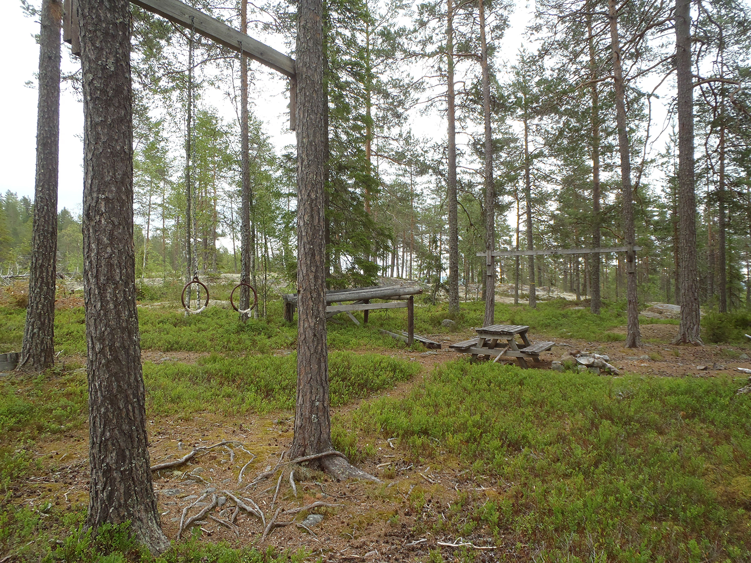 Mycket skog var avverkad och skogsmaskinerna hade mosat Vidars stig en bit. A lot of forest was felled and the forest machines had mashed Vidar’s trail a short distance.När vi hade passerat avverkningsytan mötte vi denna utsikt. When we had passed the felling area we were met by this view.Mitt i skogen fanns ett litet gym, rätt gammalt verkar det som. In the middle of the forest there was a small gym, quite old it seems.Högt uppe på berget hittar man sankmark. Ganska extraordinärt. High up on the mountain you find a marsh. Quite extraordinary.En trevlig sorts skog. A nice kind of forest.En riktigt fin utsikt från kanten på berget. A really nice view from the edge of the mountain.Helt oväntat kom vi fram till Ådalens Sändareamatörers tillhåll. Fin utsikt över Nyland och längre bort. Quite unexpectedly, we arrived at Ådalen’s Radio Transmitting Amateurs’ hangout. Nice view of Nyland and further away.Därifrån såg vi detta. Nyland och mer. From there we saw this. Nyland and more.Sedan gick vi ner på Antons stig. Den är brantare än Vidars stig, men nästa gång vi går upp hit blir det nog på denna stig. Then we went down Anton’s trail. It is steeper than Vidar’s trail, but the next time we go up here it will probably be on this trail.
